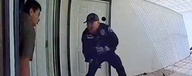 Útok nožem na policistu v Cathedral City zachytila kamera u dveří