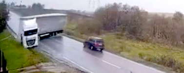 No to je debil. Než aby to sthnul do škarpy, tak se nechá převálcovat náklaďákem.