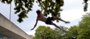 Seskok z mostu na laně