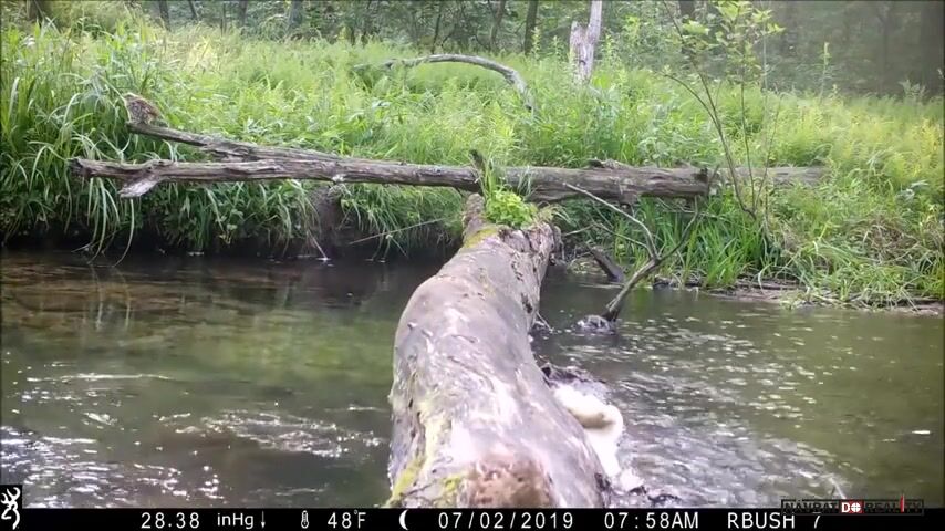 USA: Celý rok nechal Robert Bush kameru u přírodního mostu přes řeku v Pennsylvánii a tohle je výsledek. U spadlého stromu se objevila tato zvířata: medvěd černý, veverka popelavá, tetřev, mýval severní, dikobraz, rys, kojot, vrána, kolibřík, čipmank, jelenec běloocasý, ondatra pižmová, skokan volský, kachna divoká, sojka chocholatá, liška šedá, krocan a výr virginský.
