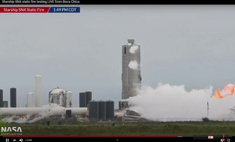 Starship SN4 byl testován od koncem dubna a v testovacím programu se dostal ze všech prototypů nejdál. Zatímco předchozí lodě Mk1, SN1 a SN3 vždy selhaly během kryogenních tlakových zkoušek s kapalným dusíkem, SN4 je zvládnul na výbornou. Navíc to byl první prototyp, který se dostal do fáze testování s připojeným motorem Raptor. To zároveň znamenalo, že loď už musela být tankována kyslíkem a hořlavým metanem.