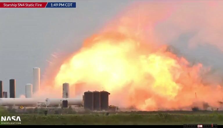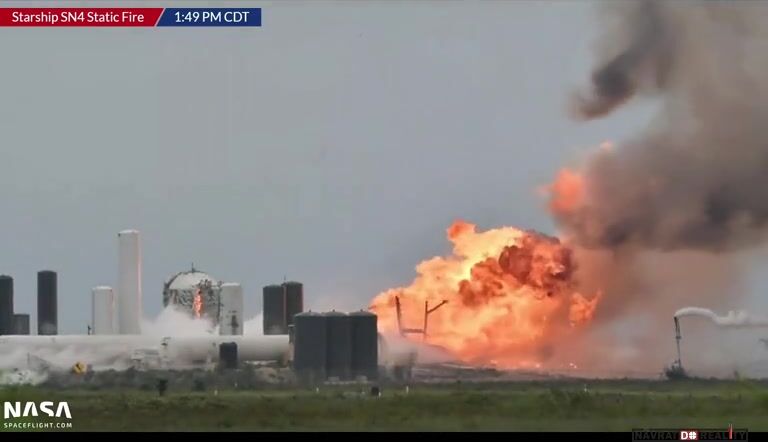 29.května 2020, Texas, USA: Prototyp vesmírné lodi Starship SN4 včera absolvoval svůj pátý statický zážeh a zhruba o minutu později explodoval. Krátce po zážehu začal ze spodní části Starship unikat plyn, načež došlo ke vznícení v oblasti motoru a obří explozi. Přesná příčina zatím není známá, ale ztráta SN4 pro SpaceX nejspíš nepředstavuje velkou ránu, protože už má další tři prototypy Starship v různých fázích výroby. SN4 v průběhu května prodělal několik tlakových zkoušek i zážehů motoru Raptor a už na příští týden byl plánován jeho první krátký let.