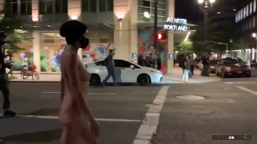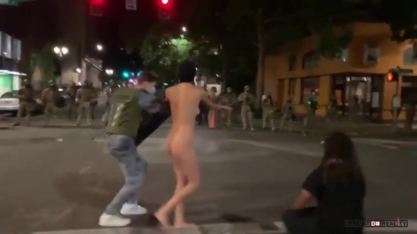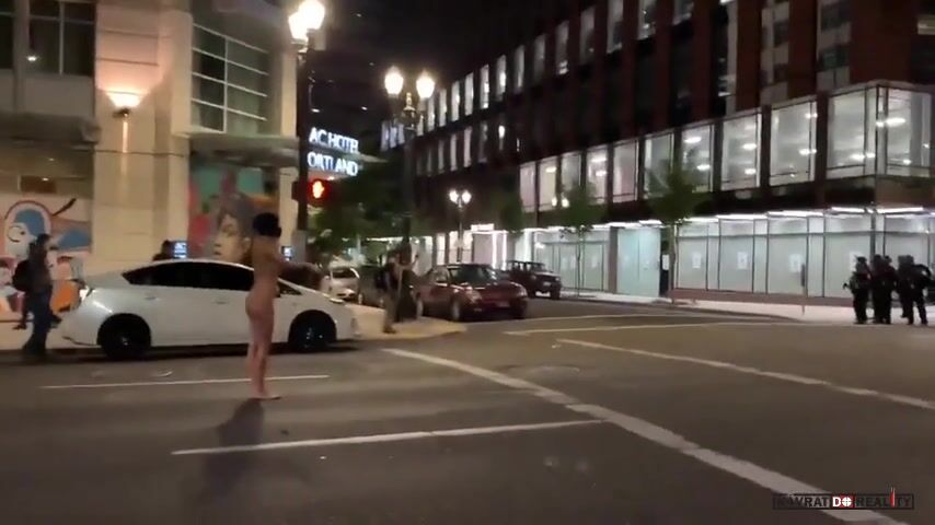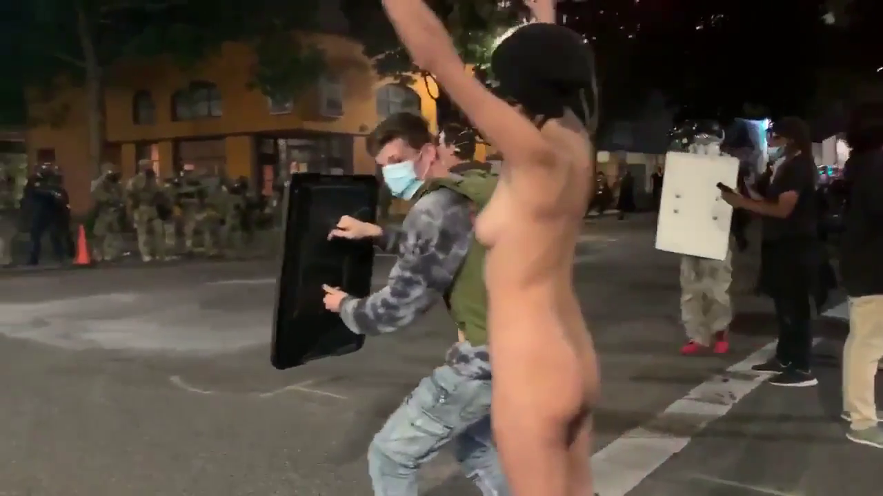 USA: V Portlandu protestovala i tato aktivistka, která od uživatelů internetu dostala přezdívku "Nahá Athéna". Podle informací jde o 30letou sexuální pracovnici (kurvu) jménem Jennifer.