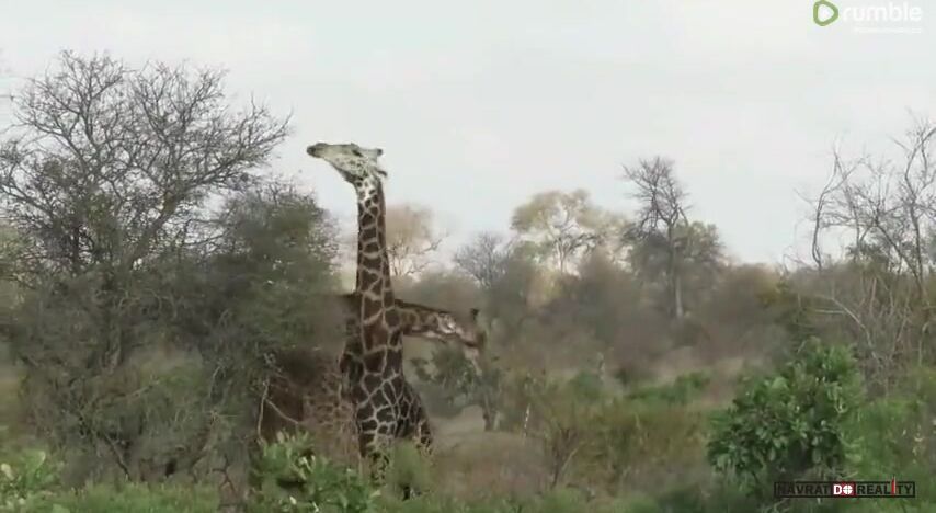 asi to většina zdejších všeználků dávno ví, ale pro ty ostatní, který by to mohlo zajímat, tohle je přesně ten důvod, proč maj žirafy dlouhý krky. né, aby mohly okusovat nějaký stromy, ale protože samci zápasili tadytim bušením krků o sebe a kdo měl krk delší, vyhrál a oplodnil..