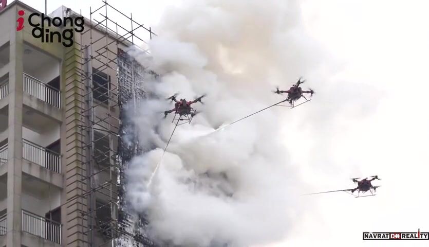 0:56. Drony hasí a hasiči dělají barbecue.