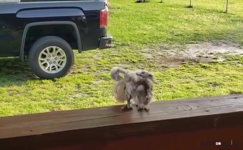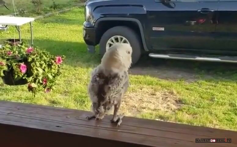 majitel ho upozornil pred odchodom, ze ked mu vypije palenku, tak mu vytrha perie.