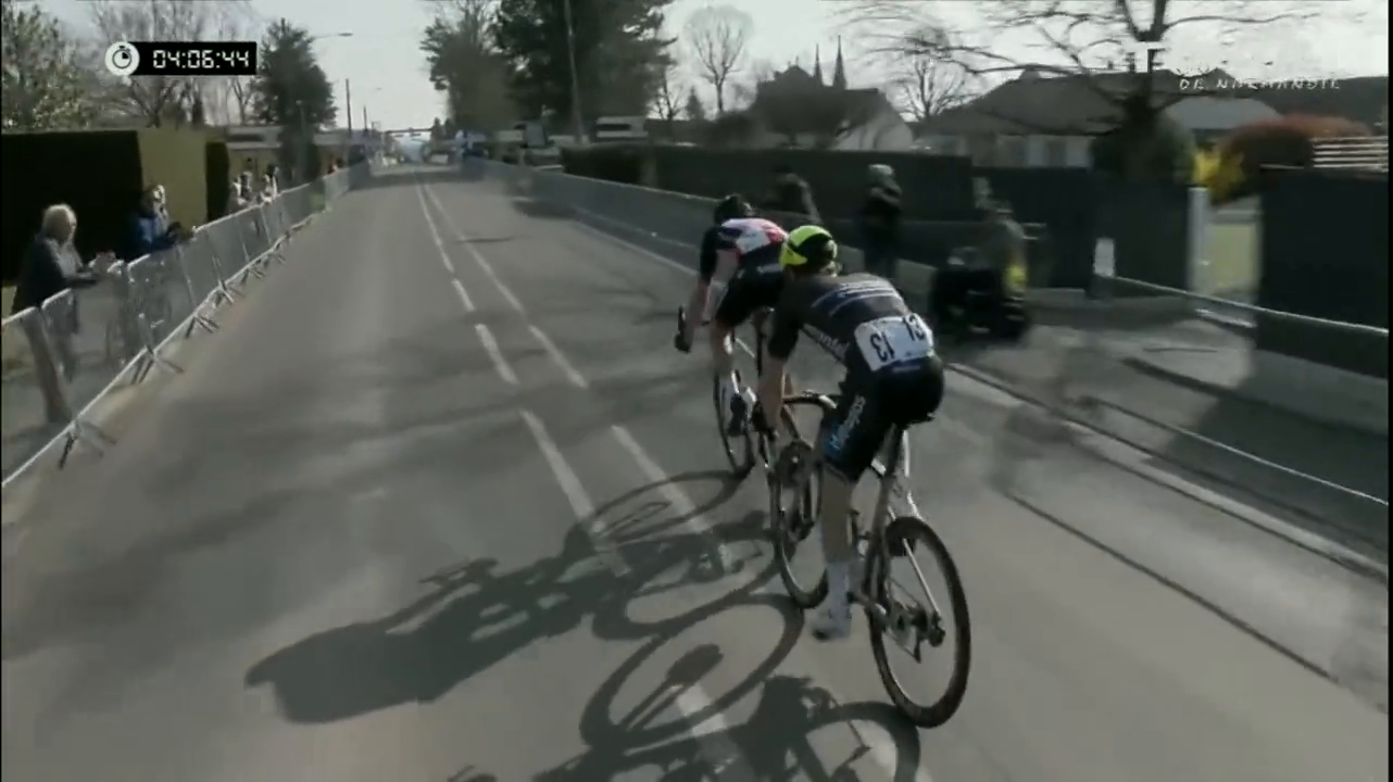 22. Března 2022, Francie: Během 2. etapy Tour de Normandie zvedl nizozemský jezdec Jordan Habets (Metec-Solarwatt-Mantel) ruce nad hlavu, aby oslavil vítězství nad Francouzem Romainem Baconem (CC Nogent-sur-Oise), ale neuvědomil si, že do cíle zbývá ještě jedno kolo. Nakonec byli oba muži 2 km před cílem dostiženi pelotonem a etapu vyhrál nizozemský jezdec Casper Van Uden (Sunweb Development).