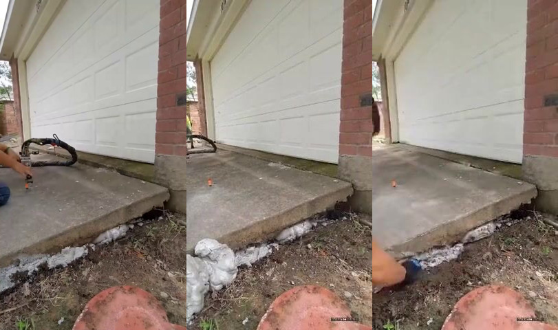 A přece je to pěna! Cement ani beton nenapěňují, nezvětšují svůj objem, což se zde děje. Jde o nějakou formu PU pěny, možná s cementovým plnivem pro výslednou pevnost.