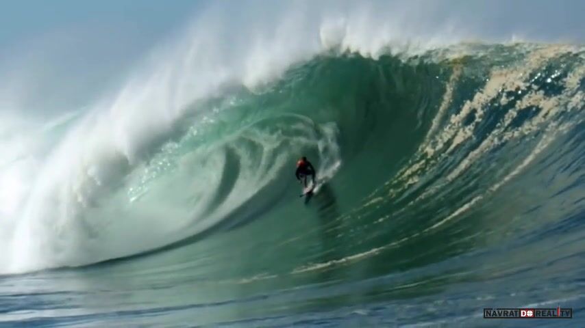 Ta havaj je v druhé části videa. Ze startu sjíždí vlny v Nazare