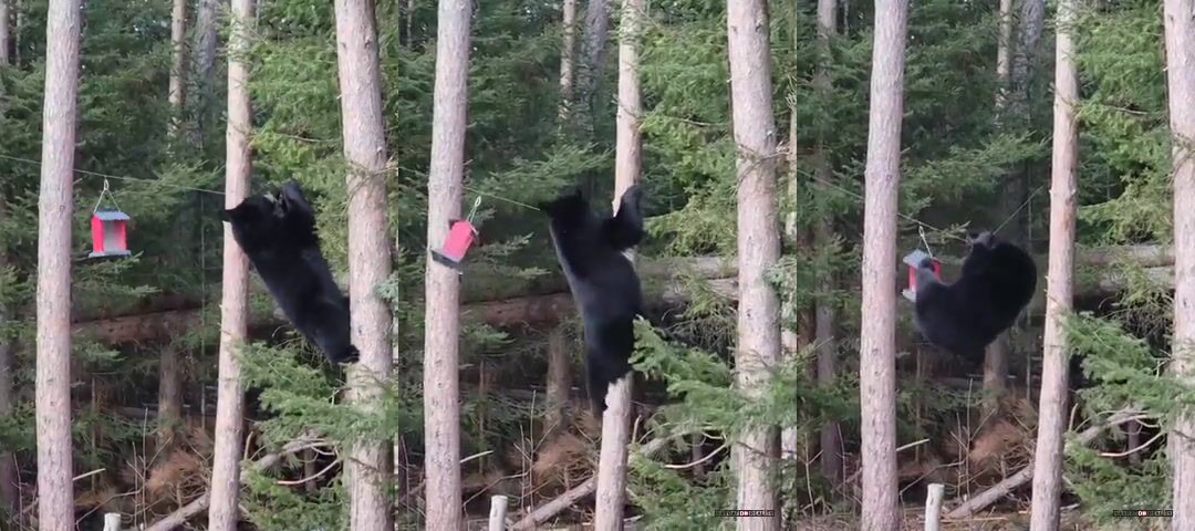 Nikoho nezarazilo, že provaz, na kterém visí krmítko unese medvěda? A unese ho i to krmítko? To jim tam lítaj jíst vrtulníci?