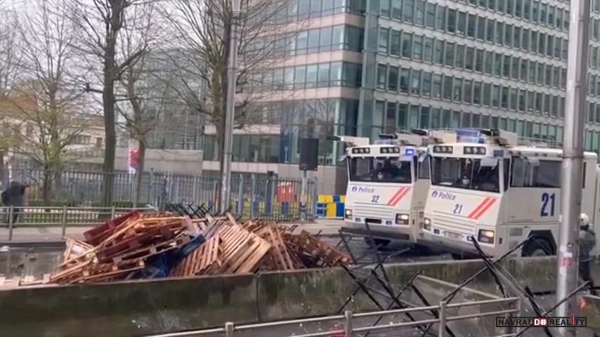 To je bohuzel mocuvka. Hnuj na velkym rozmetadle by udelal vic parady. Zejmena, pokud by trachtorista svedomite nacouval az k te barikade palet a pak spustil. To by kuci policajtsky zalezli v tech hasickach cuceli jak puci.