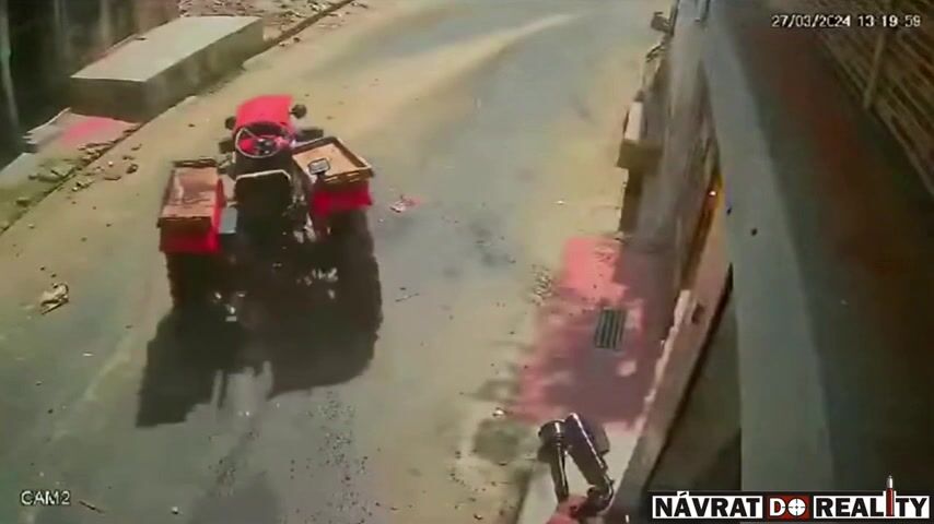 Katapult v traktoru? Jsou pred nami..Autobusu asi selhaly brzdy.