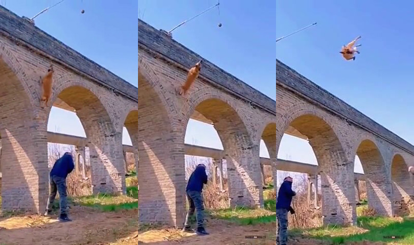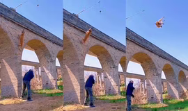 Tam musí být kurevská důvěra psa v člověka, že ho chytí a nepoláme si hnáty.