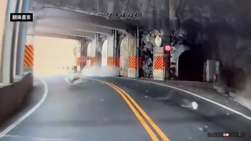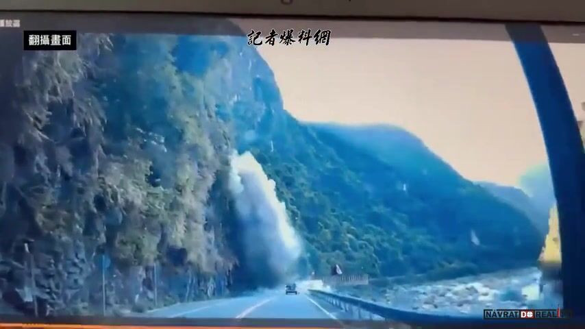 Auto zasažené padajícími kameny během zemětřesení