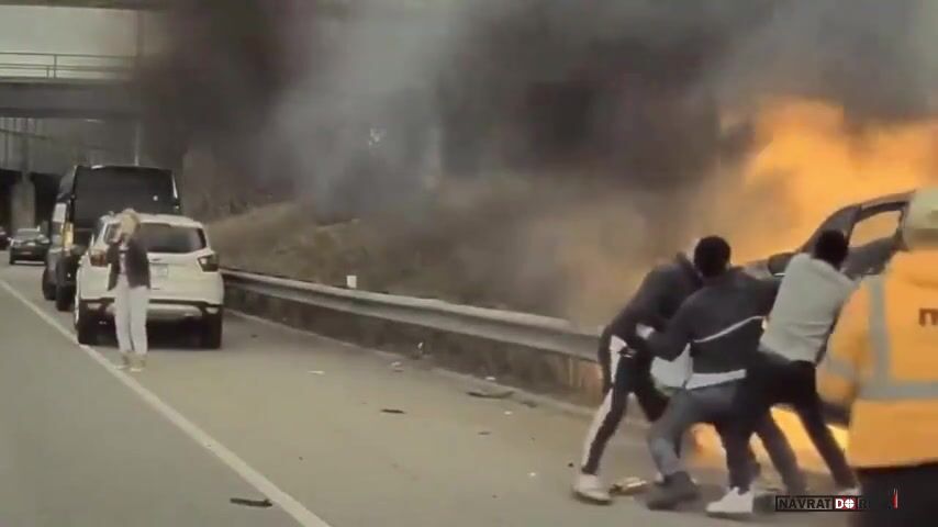 Kolemjdoucí zachránili řidiče z hořícího auta