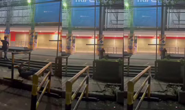 V klidu, ten mrkne na trubku, ze mu tesne lize vlasy, kdyz stoji nohama na zemi a rekne 'v poho'.