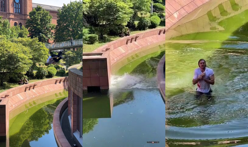 Zjevně se před skokem nenapil. Chyba !