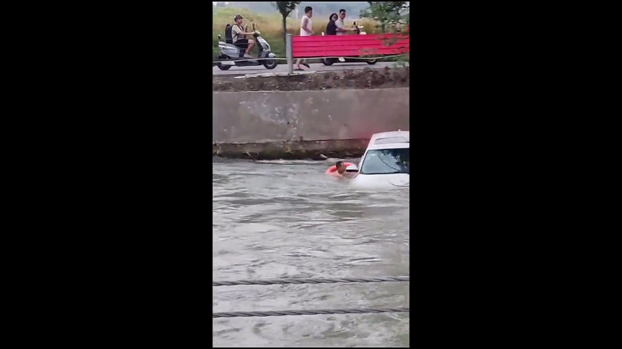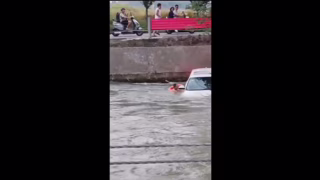 Dramatická záchrana lidí uvězněných v autě plujícím po řece