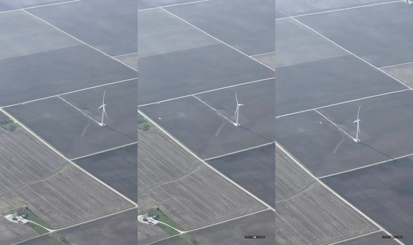 Z pořatečního pohledu , když se letadlo přibližuje to vypadá že bude prolétavat středem vrtule, ale na konci je jasně vidět že letí mimo.