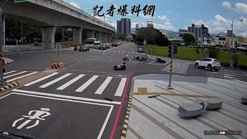 V Taichungu došlo k neobvyklé dopravní nehodě, při níž taiwanský řidič s příjmením Lin způsobil chaos na silnici. Incident se stal v neděli 20. června v poledne, kdy Lin řídil bílý osobní vůz a při odbočování vlevo na křižovatce Jinde narazil do oddělovacího ostrůvku. Nečekaně začal couvat a při vysoké rychlosti provedl dvě velké otočky kolem křižovatky. Následně najel na chodník a pak srazil čtyři skútraře čekající na zelenou, což vedlo ke zranění tří osob.