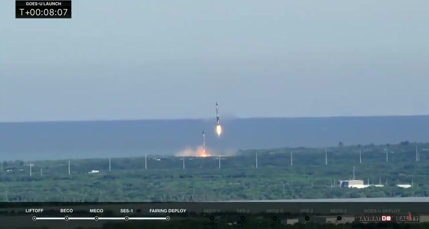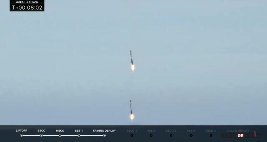 Úžasné dvojité přistání boosterů rakety Falcon Heavy na přistávacích zónách LZ-1 a LZ-2 po úspěšném vypuštění satelitu GOES-U. Toto synchronizované přistání předvádí preciznost a odborné schopnosti společnosti SpaceX v oblasti záchrany boosterů, což dále upevňuje jejich vedoucí postavení v technologii znovupoužitelných raket.
