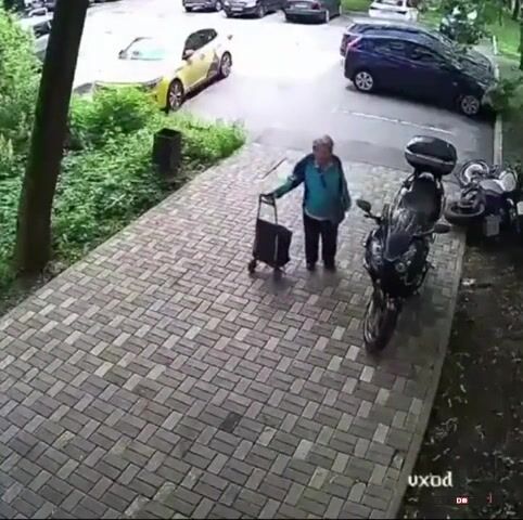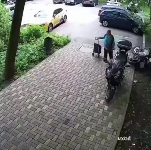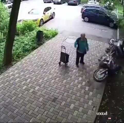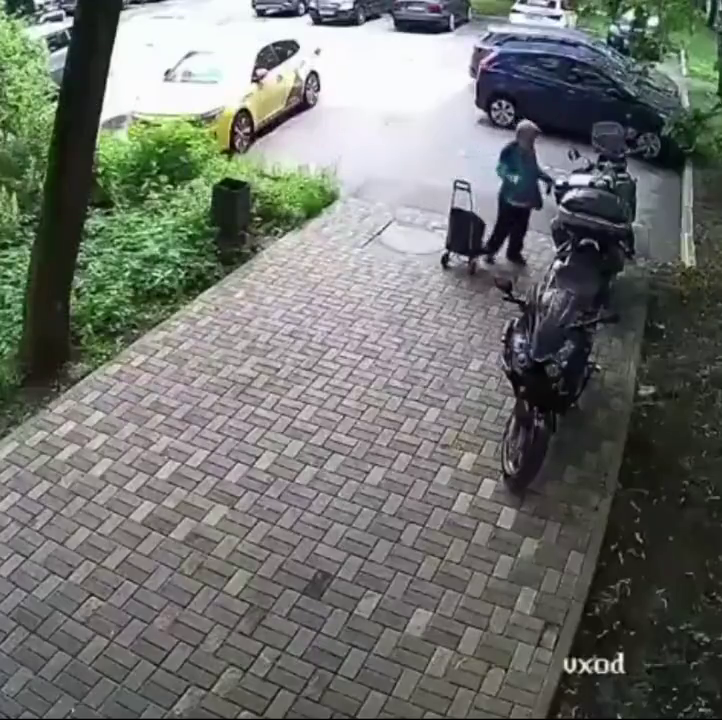 Aneb když stará bolševická svině neví, že motorky můžou parkovat i na chodníku a rozhodne se s tím taky bolševicky vypořádat. Svině stará, skopnout ze schodů nejlíp.