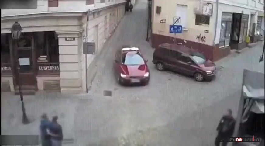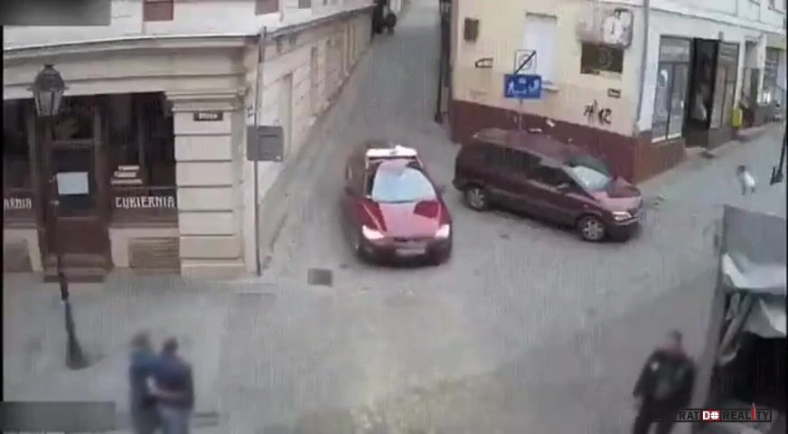 Neznám polský značky ani dopravní předpisy, ale přijde mi to jako výjezd z obytné zóny. Tedy místo mimo komunikaci a ne křižovatka. Když to vezmu českou optikou, tak dát přednost znamená "počínat si tak, aby druhej nemusel náhle změnit směr ani rychlost jízdy". Což v tomhle případě bylo splněno. Pumpičkář jel jako kripl a jako kripl taky skončil. Navíc pumpa chtěla letět po chodníku, ještě štěstí, že ji auto s lampou vysvětlili, jak má správně jezdit.