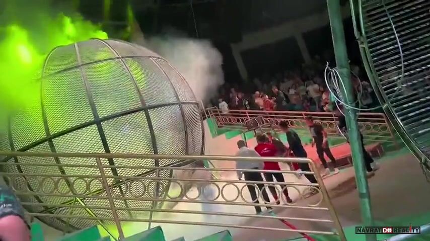 Incident se odehrál během vystoupení, kdy motocyklisté předváděli adrenalinové akrobatické kousky uvnitř obrovské kovové klece, často označované jako „Koule smrti“. V této kleci se jezdci pohybovali vysokou rychlostí, čímž ohromovali publikum. K tragické nehodě došlo ve chvíli, kdy jeden z motocyklů ztratil kontrolu a vrazil do druhého. Následná exploze motocyklu zapříčinila rozšíření plamenů po aréně, což vedlo k okamžitému přerušení představení.