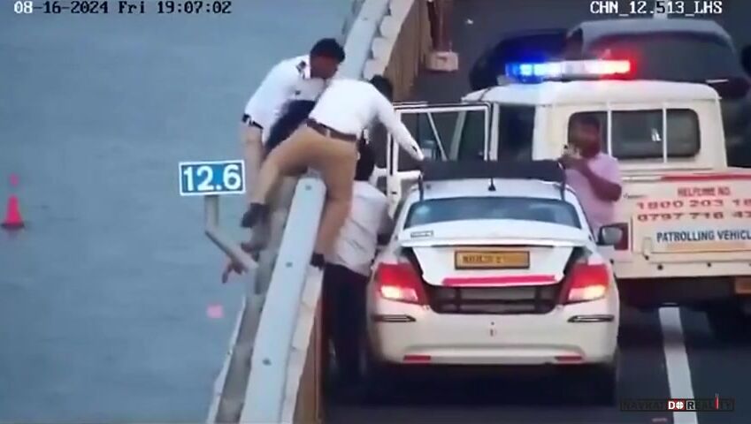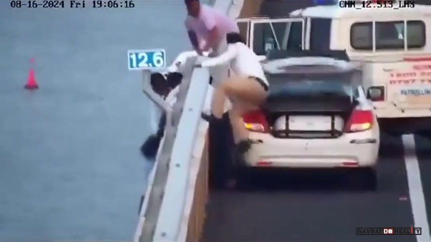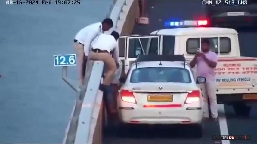 Když policie dorazila na místo, žena údajně zpanikařila a pokusila se skočit do moře. Naštěstí taxikář Sanjay Yadav zasáhl včas – chytil ji za vlasy a zamezil tak jejímu pádu. Policisté okamžitě přelezli zábradlí a společně ji vytáhli zpět do bezpečí.