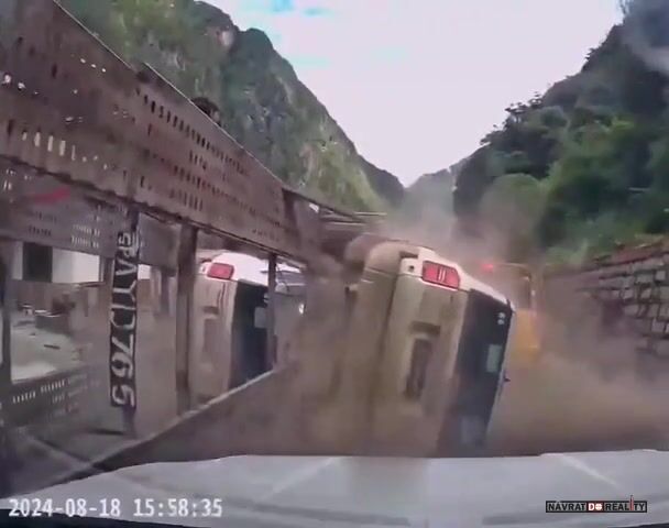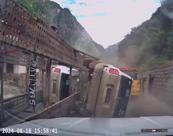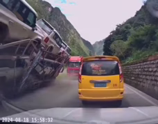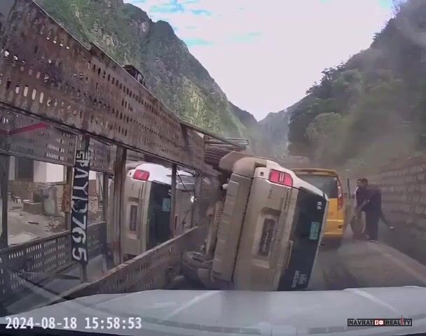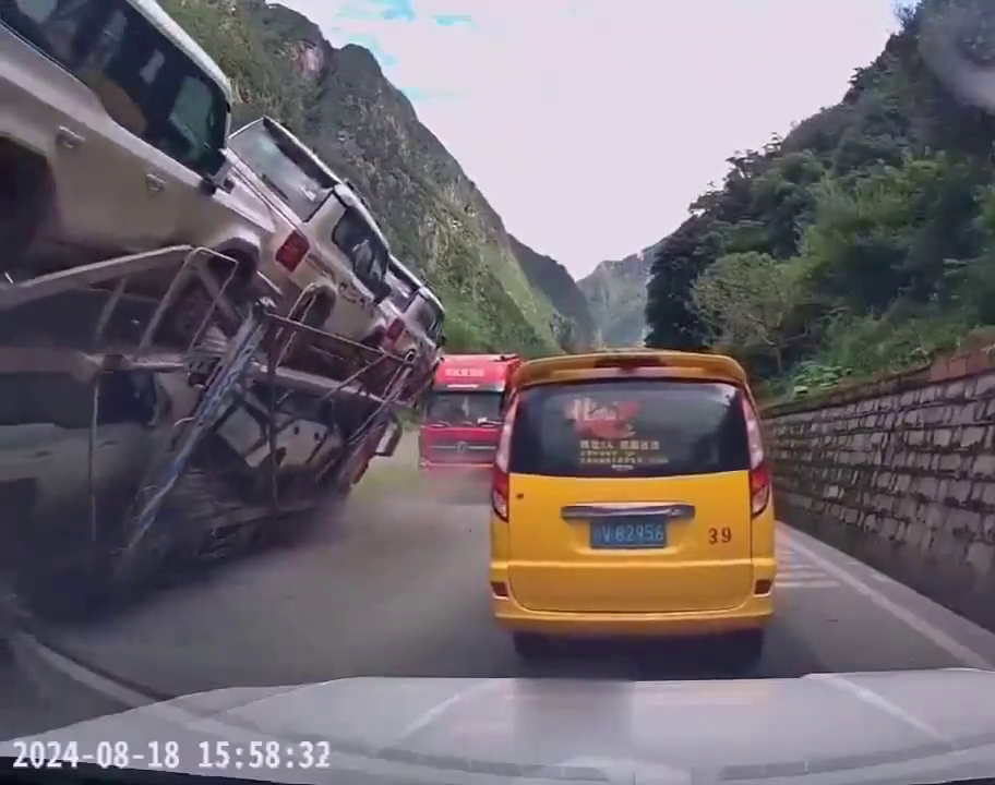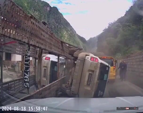 Naložený kamion téměř rozdrtí auto