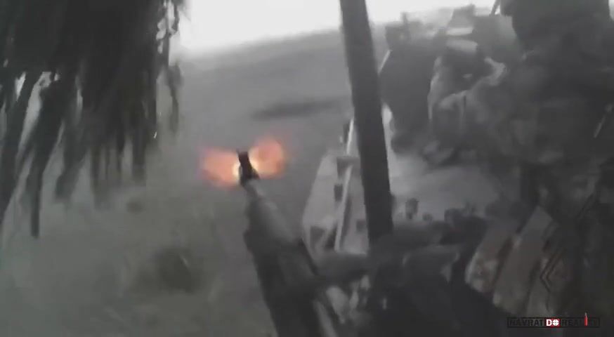 Ruské bojové vozidlo BTR-82a pod útokem dronu
