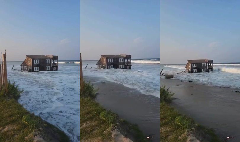 Dům postavený na oceánu se zřítil kvůli hurikánu Ernesto v Severní Karolíně