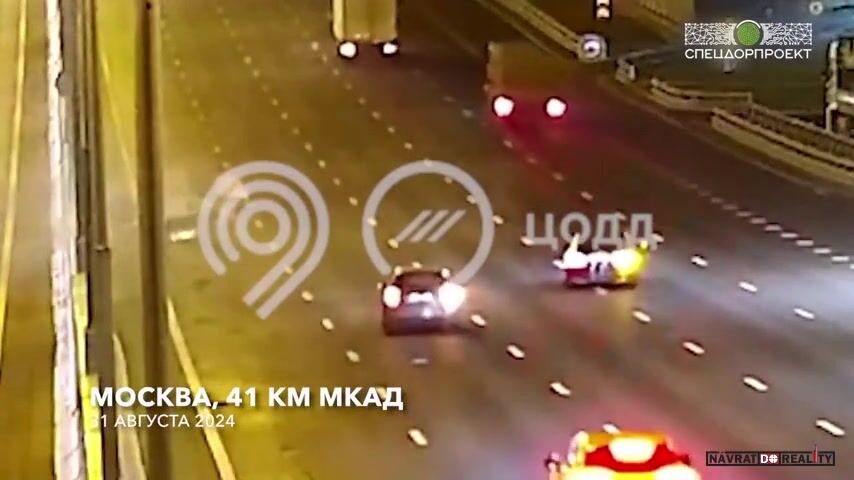Dopravní nehoda se stala 31. srpna na 41. kilometru silnice. Po Moskevském okruhu se valilo kolo, do kterého narazil řidič sdíleného vozu, který jel v levém jízdním pruhu. Následkem srážky bylo auto vymrštěno několik metrů do vzduchu a dopadlo na střechu. Řidič sdíleného vozu nehodu přežil, ale utrpěl vážná zranění.