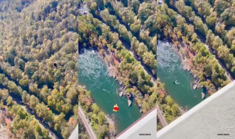 pekný skok do vody vo dvojici. ten kokot bez padáku bude naveky slúžiť v pekle tomu s padákom!