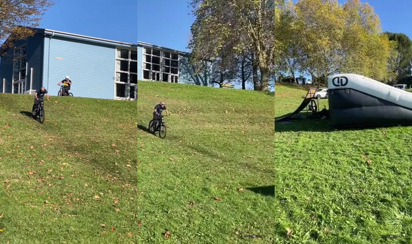 Starší muž si chtěl vyzkoušet skok na kole pomocí rampy
