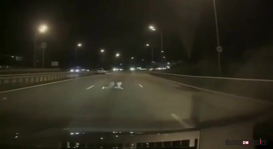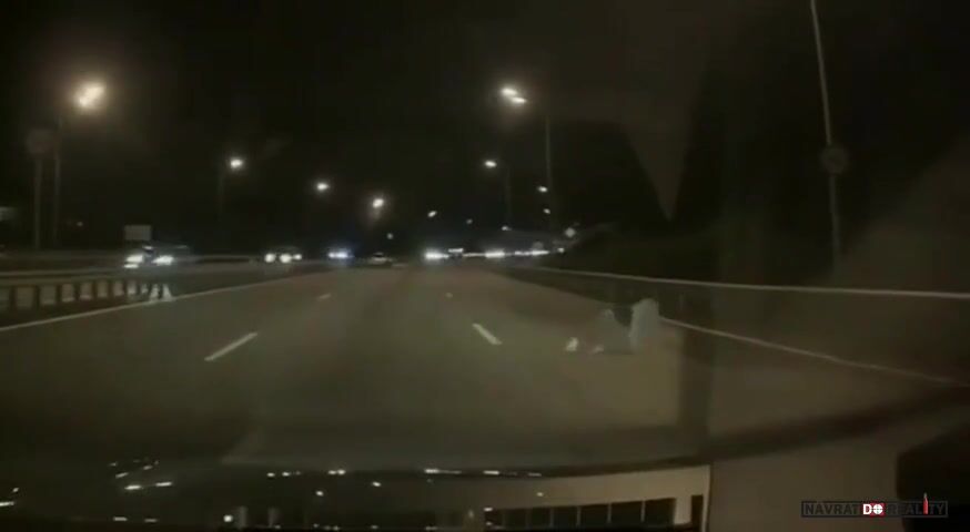 Naštěstí byl motorista, jehož kamera zachytila tento neuvěřitelný incident, jediným vozidlem na silnici v tu dobu a všiml si ženy, která vyskočila přímo před ním.
