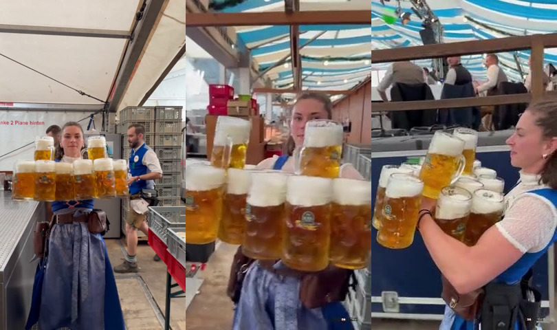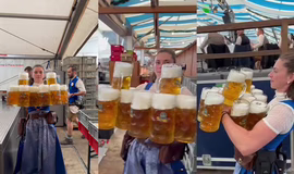 Práce servírky na Oktoberfestu vyžaduje pořádné svaly!