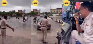 Policista ve městě zasaženém povodněmi fackuje porušovatele dopravních předpisů