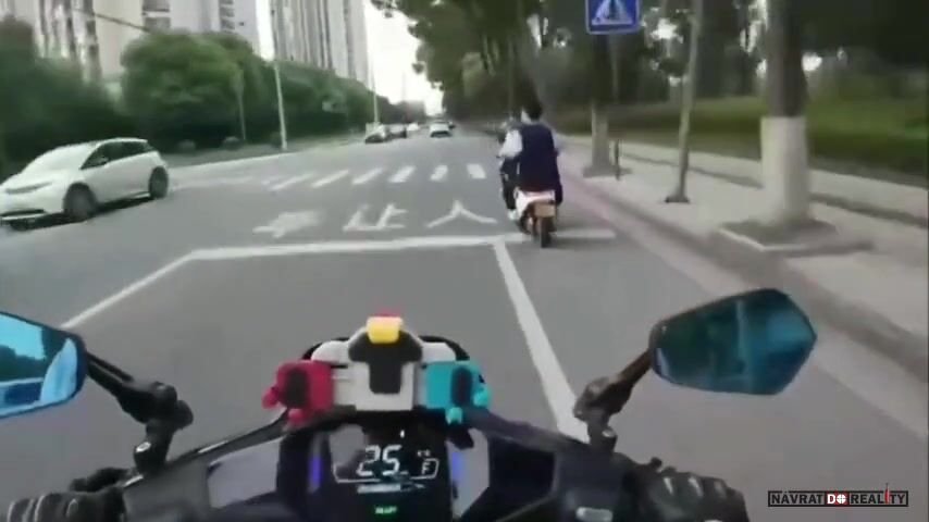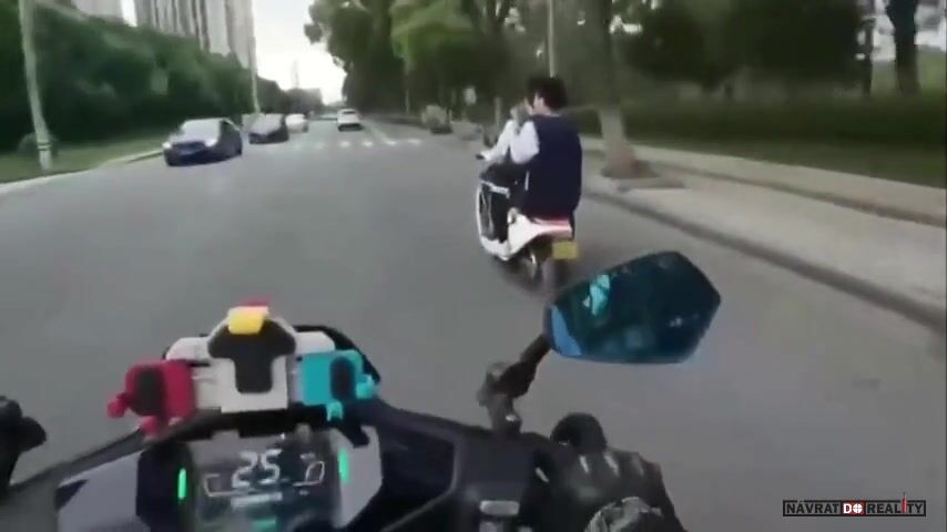 Karma pro motorkáře ukazujícího prostředníček na skútraře