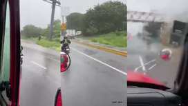 Karma pro motorkáře ukazujícího prostředníček na kamionu