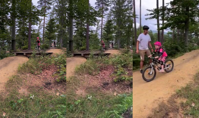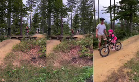 Téměř povedený downhill se skokem malé holčičky