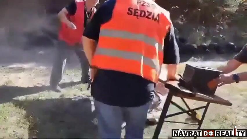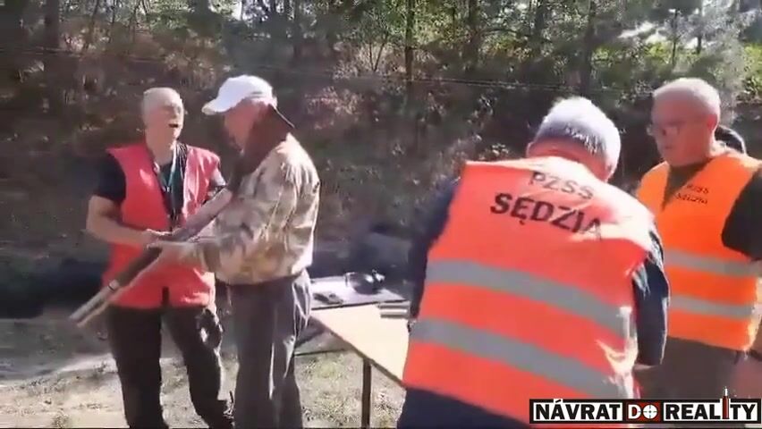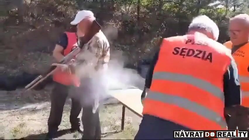 Na klipie widzimy kilku mężczyzn z bronią. Jeden z nich ma pomarańczową kamizelkę z napisem PZSS sędzia. - Rozładuj, po dwa - instruuje go drugi. Chwilę później oddaje strzał ze strzelby, trafia stojącego obok mężczyznę w pośladek.