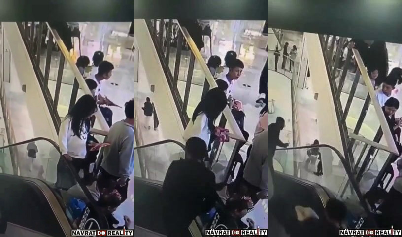 Co mas se sklem? Ta krava se nacpala mezi pohyblive madlo a sklenene zabradli. Chyba byla jn v tom, ze meli spatne osetreny prechod zabradli a schodu.