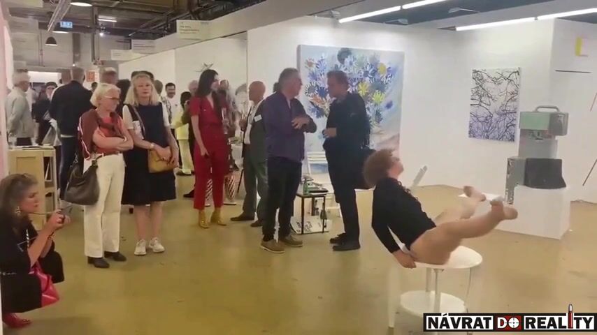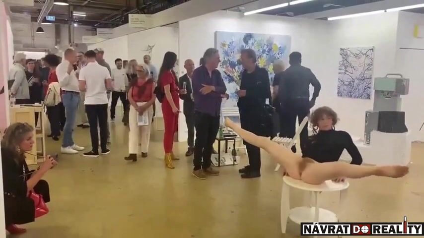 Ale jak sleduji, valnou pozornost tento vystavený performanční prvek nevzbudil. Jedna nadržená asi lesba fotografka, co si to natáčí, aby nad tím doma honila a 2 očumující staré megery. Jinak je to tam všem celkem u prdele, vlastně u píči. Navíc performerce nezávidím, musely jí ukrutně bolet nohy, mít je takhle do praku celou dobu.