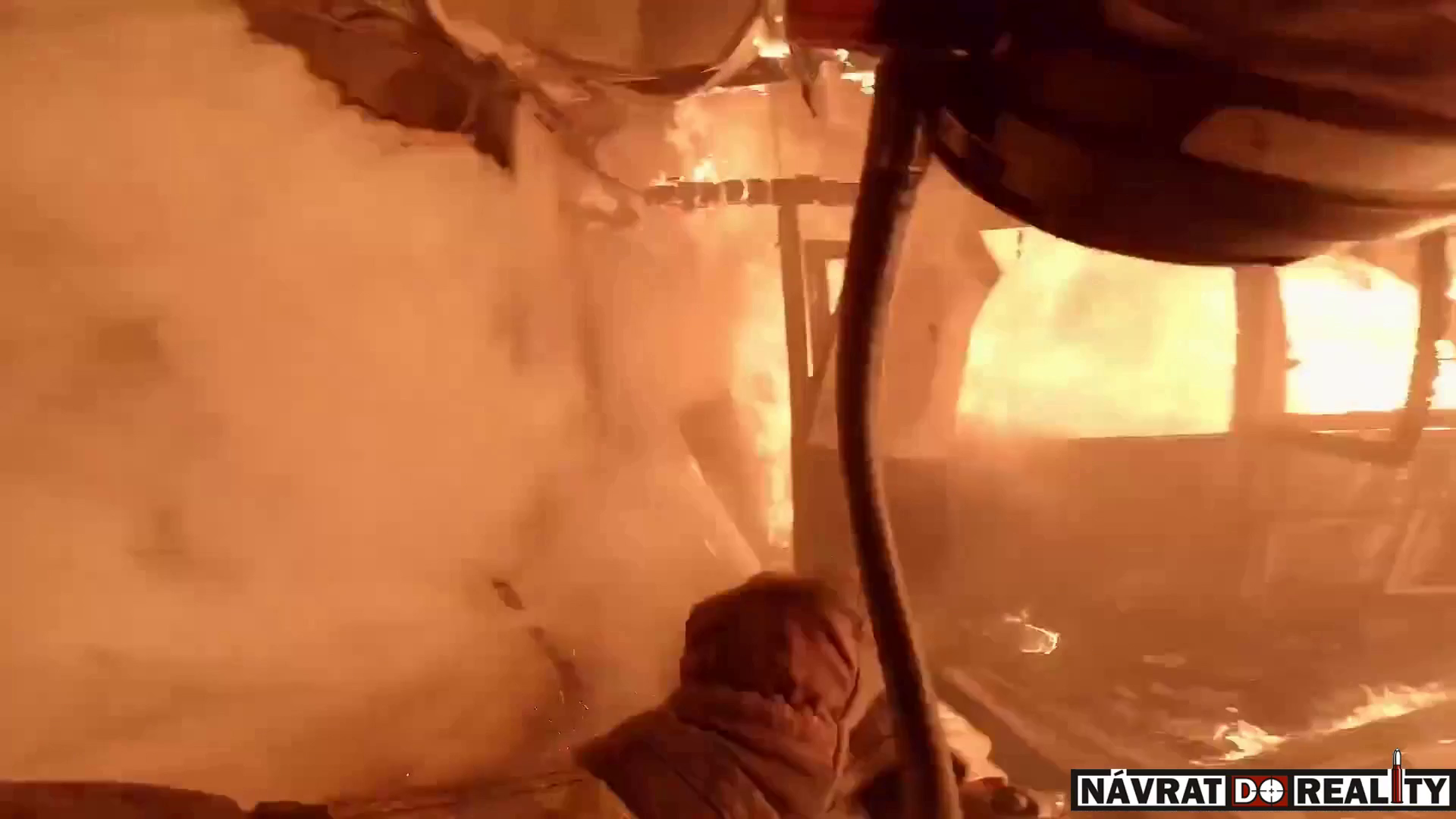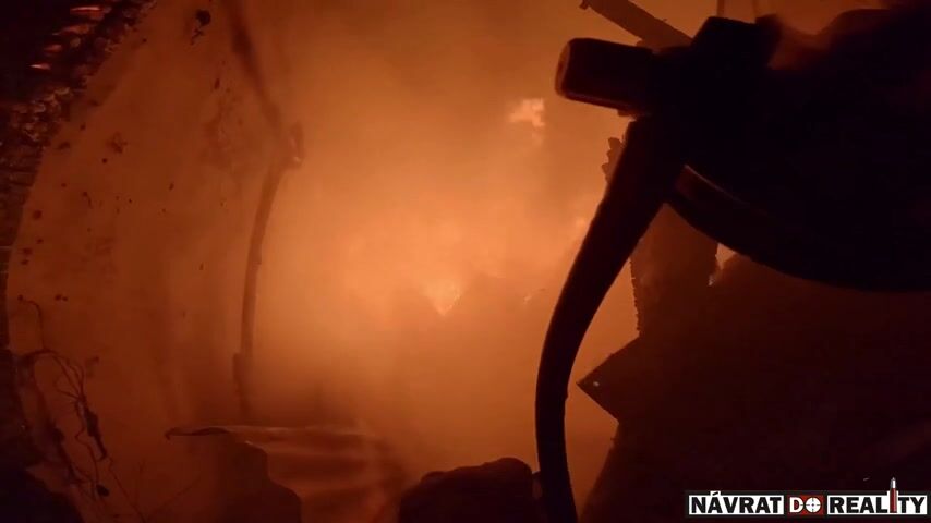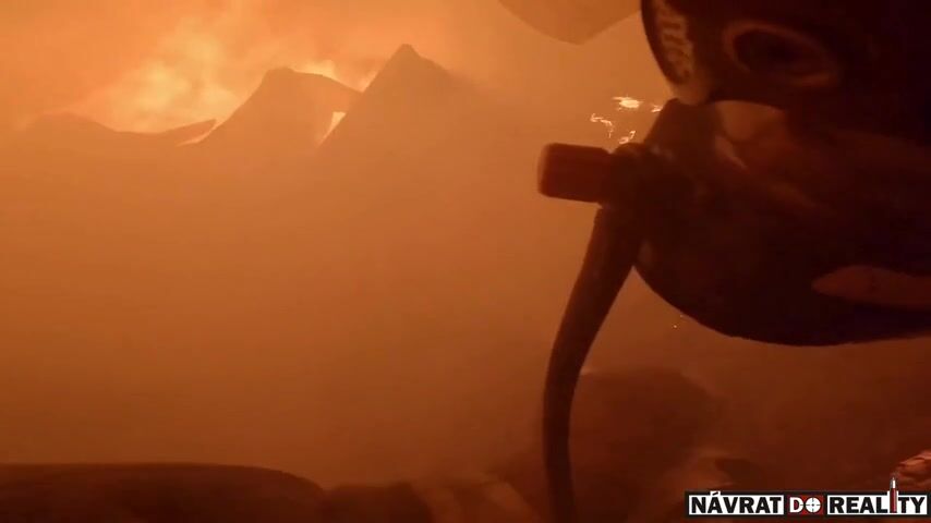POV záběr zasahujícího hasiče