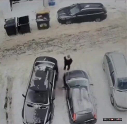 Jako by ten kkt měl v batohu na zádech nějaký magnet, že ho to furt táhne na to stejné místo mezi auty :-D