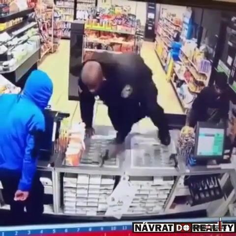 Tohle nebyl policajt ani náhodou vy dementi, určitě by se tam houpal jak na diskotéce a pistoli jen tak položil za sebe na pultík, kdyby s nima nebyl domluvenej