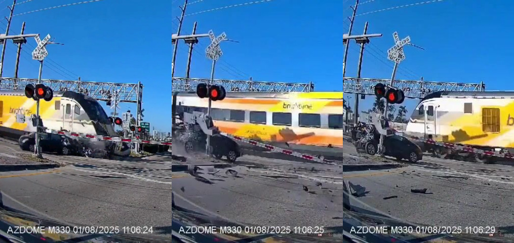 V North Miami Beach na Floridě došlo ve středu 8. ledna 2025 k nehodě, při níž vlak Brightline narazil do automobilu, jehož řidič projel spuštěnými závorami na železničním přejezdu. Video zveřejněné společností Brightline ukazuje, jak vozidlo objelo stojící dopravu, projelo skrz spuštěné závory a vjelo na koleje, kde bylo zasaženo projíždějícím vlakem. Náraz odhodil automobil do jednoho z přejezdových sloupků, což vedlo k rozsáhlému poškození vozidla. Řidič byl převezen do nemocnice s nezávažnými zraněními. Policie potvrdila, že řidič ignoroval varovné signály a závory na přejezdu.