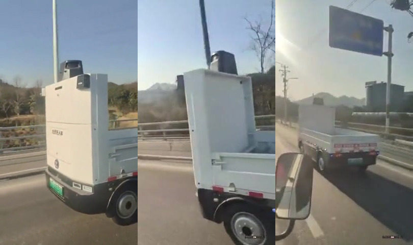 Dodávka bez řidiče na čínské dálnici