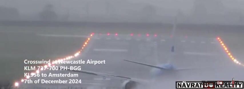Během bouře Darragh na letišti v Newcastlu provedl letoun Boeing 737 společnosti KLM nebezpečný vzlet za silného bočního větru. Extrémní povětrnostní podmínky komplikovaly manévr, přičemž poryvy větru ohrožovaly stabilitu letadla při startu. Navzdory nepříznivým podmínkám posádka úspěšně zvládla vzlet a pokračovala v plánovaném letu.